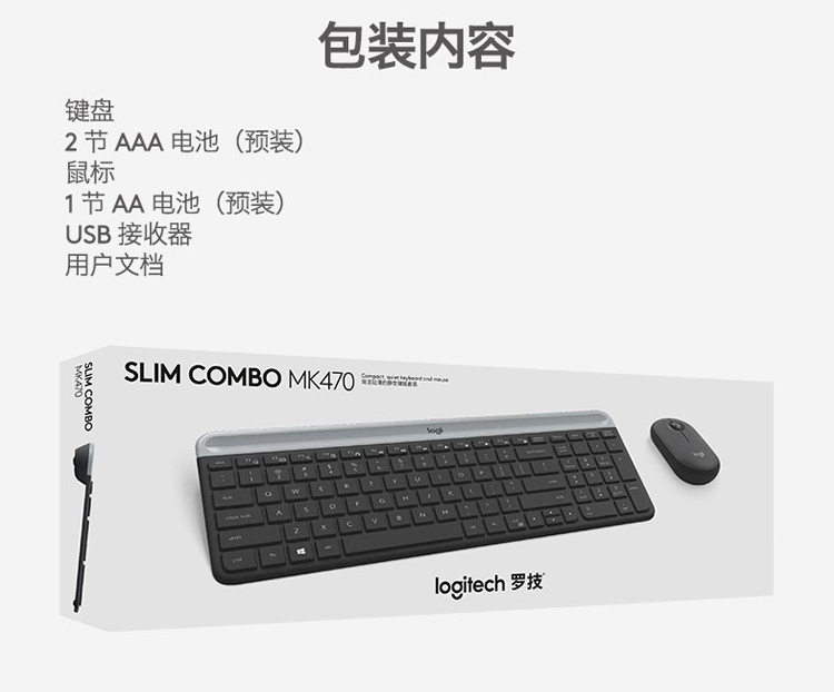 商品名称:罗技(Logitech)MK470 键鼠套装 无线键鼠套装 全尺寸超薄 无线2.4G接收器