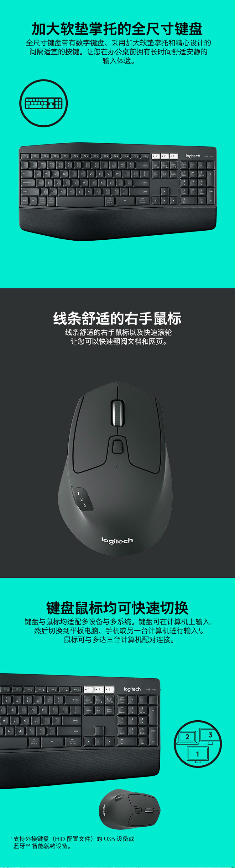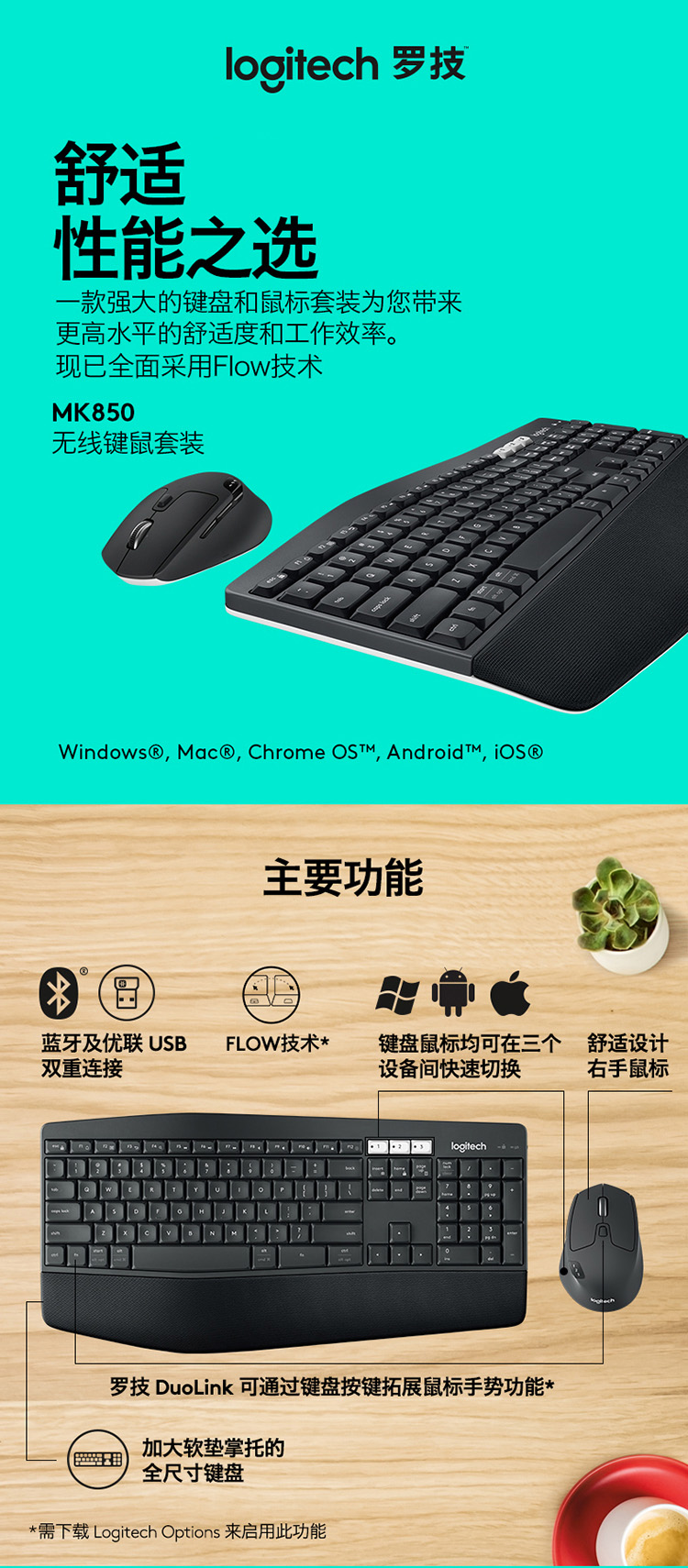 商品名称:罗技(Logitech)MK850无线键鼠套装 高效能 多设备无线键鼠套装