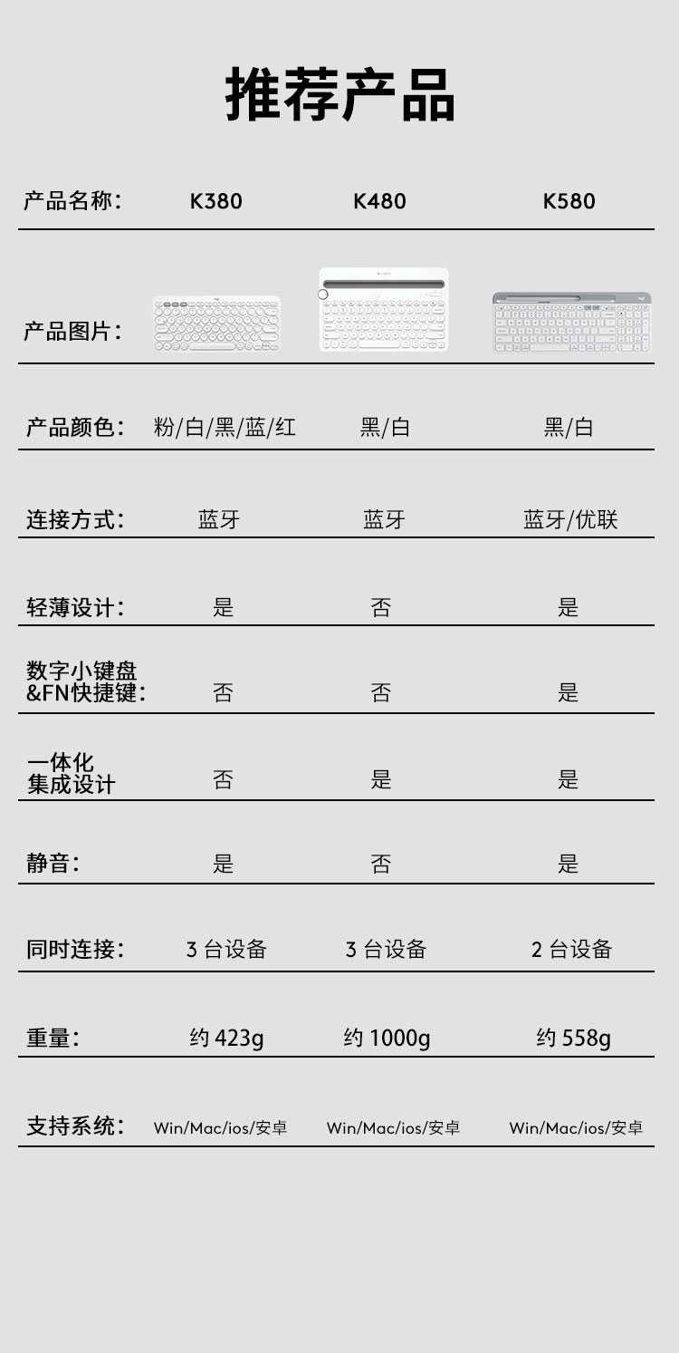 商品名称:罗技(Logitech)K380 键盘 无线蓝牙键盘 办公键盘 便携 键盘