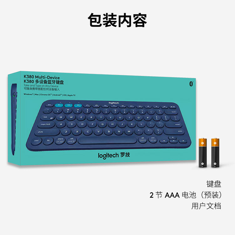 罗技(Logitech)K380 键盘 无线蓝牙键盘 办公键盘 便携 键盘