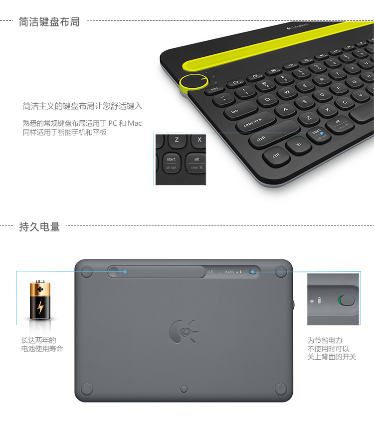 罗技(Logitech)K480 键盘 无线蓝牙键盘 办公键盘 便携