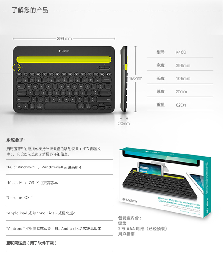 商品名称:罗技(Logitech)K480 键盘 无线蓝牙键盘 办公键盘 便携