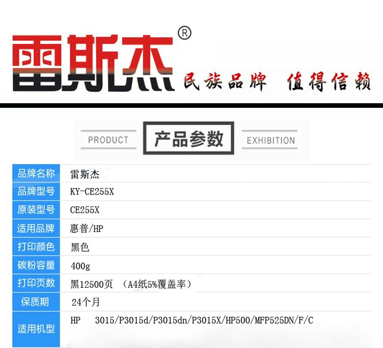 商品名称:雷斯杰 KY-CE255X黑色硒鼓 适用惠普:HPP1566/1606/1536/202N