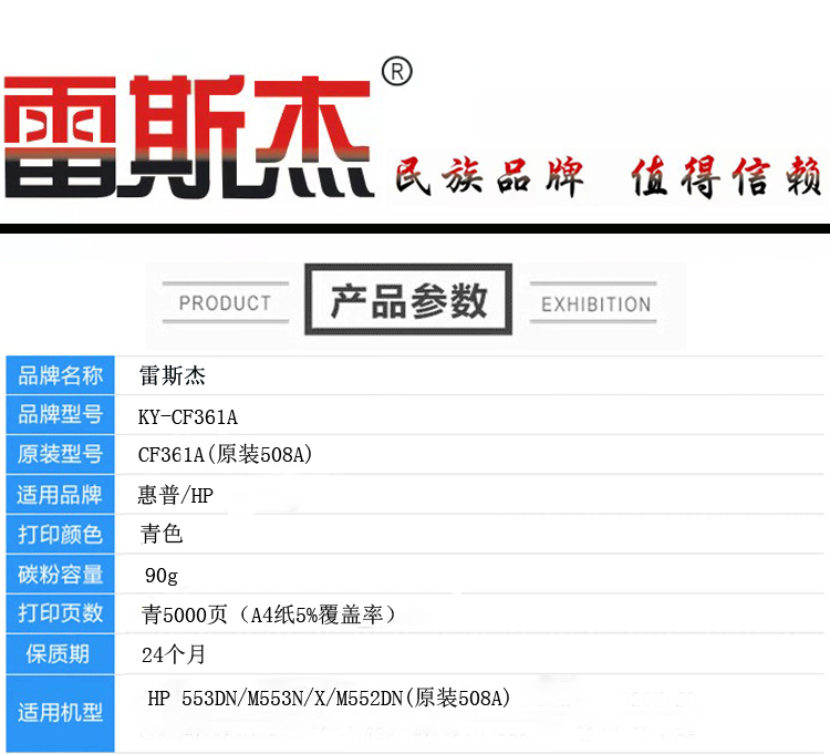 商品名称:雷斯杰 KY-CF361A蓝色硒鼓 适用惠普:HP553DN/M553N/X/M552DN