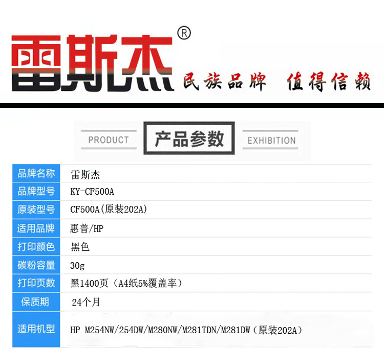 商品名称:雷斯杰 KY-CF500 黑色硒鼓 适用惠普:HP M254nw/254dw/M280nw/M281fdw