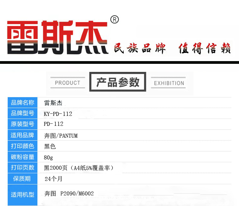 商品名称:雷斯杰 KY-奔图PD-112 黑色硒鼓 适用奔图:P2090/M6002