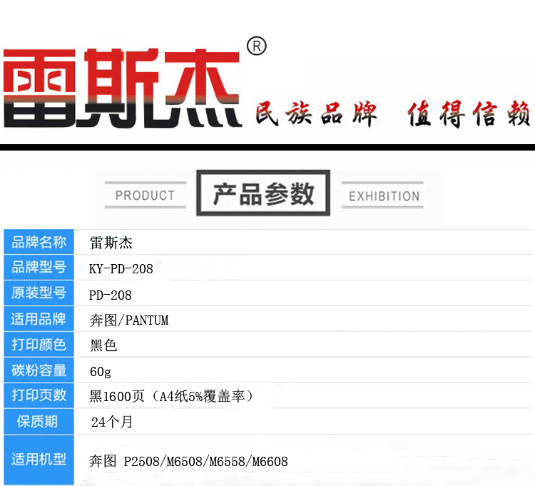 商品名称:雷斯杰 KY-奔图PD208黑色硒鼓 适用奔图:P2508/M6508/M6558/M6608