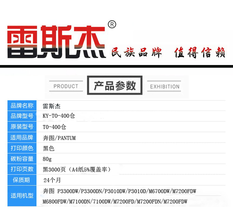 商品名称:雷斯杰 KY-奔图TO-400仓 黑色粉盒 适用奔图:P3300DN/P3300DW/P3010DW/P3010D/M6700DW/M7200FDW等