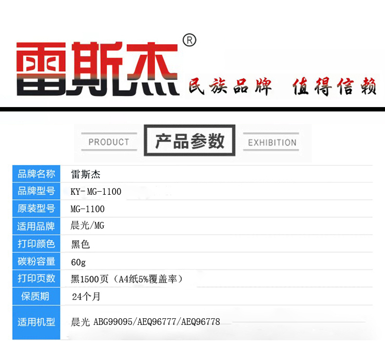 商品名称:雷斯杰 KY-晨光MG-1100 黑色硒鼓 适用晨光:ADG99095/99096/ADG96777/96778