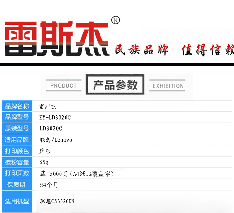 商品名称:雷斯杰 KY-LD3020蓝色硒鼓 适用联想:CS3320DN