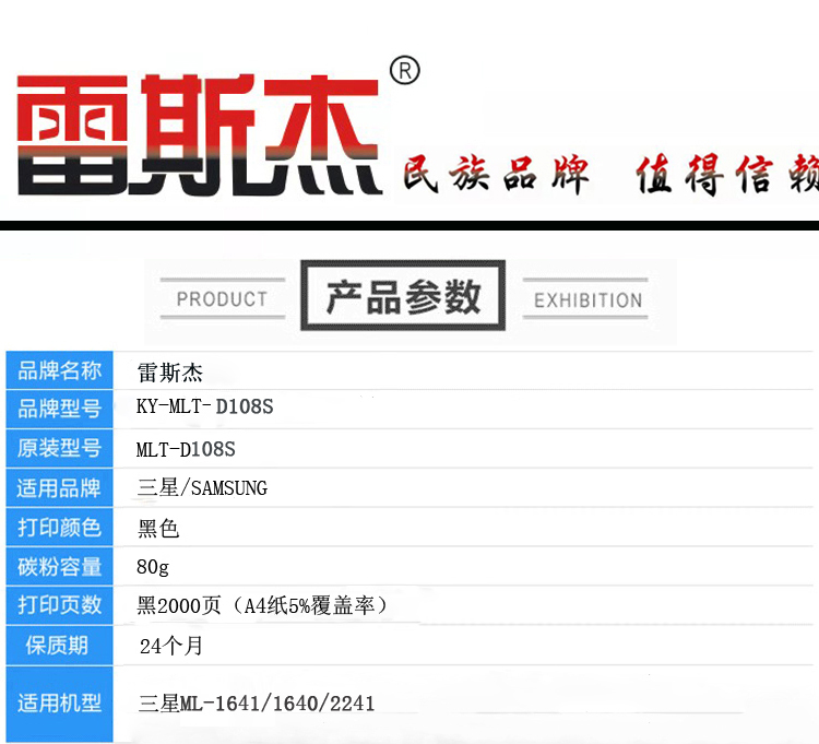 商品名称:雷斯杰 KY-MLT-D108S 标准型硒鼓 适用三星:ML-1641/2241