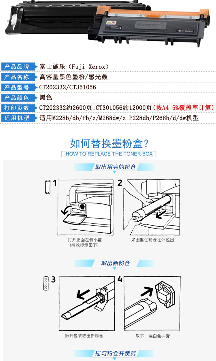 商品名称:富士施乐(Fuji Xerox)CT351056 硒鼓/感光鼓 (适用于:M228z;M268;P228db;P268;M228fb)