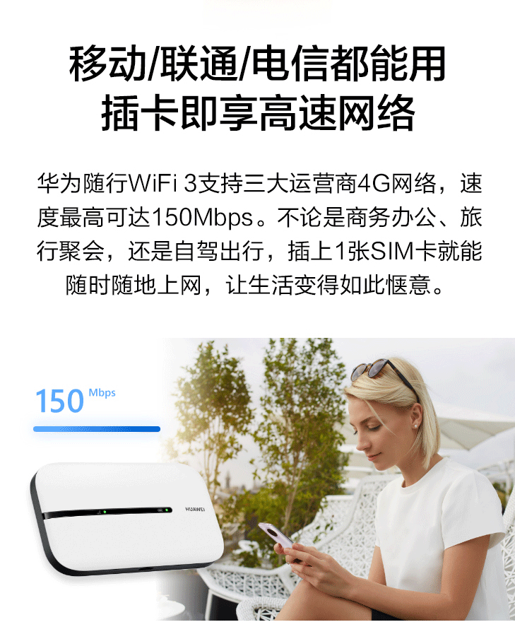 商品名称:华为随身WIFI3 4G全网通高速上网E5576-855 +电信上网卡半年卡200G/月