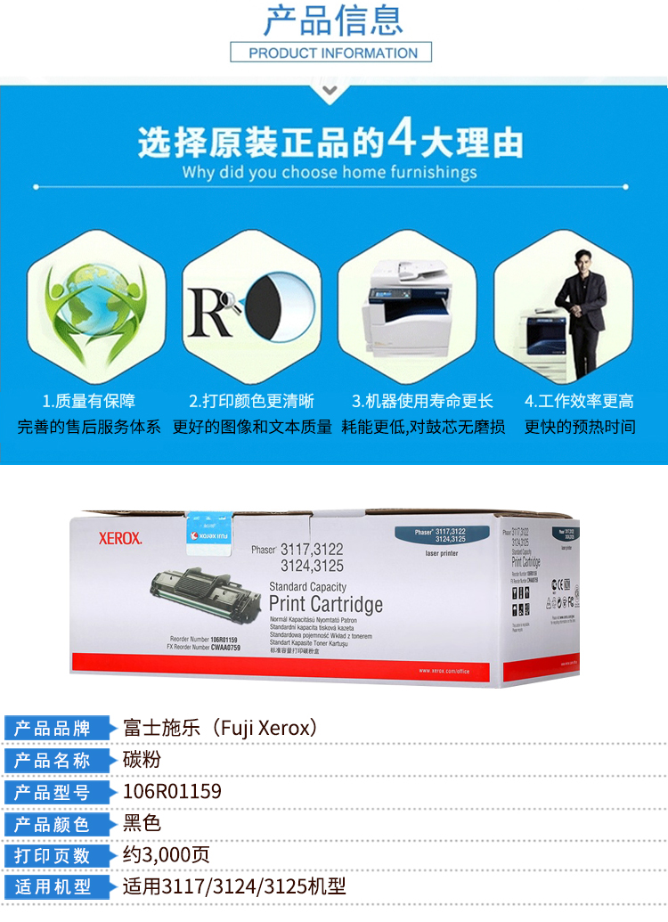 商品名称:富士施乐(Fuji Xerox)3117/3124/3125黑色硒鼓 106R01159 (适用于:3117;3124;3125)