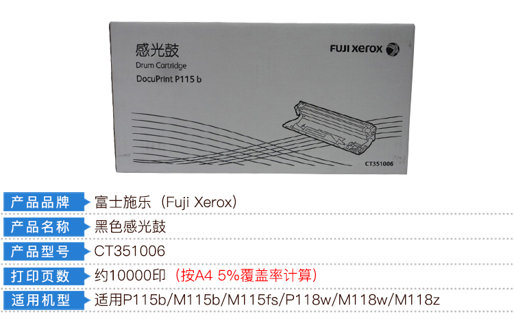 商品名称:富士施乐(Fuji Xerox)CT351006 感光鼓(适用于:DocuPrint M115b/M115f/M115fs/M118w/M118z/P115b/P118w)