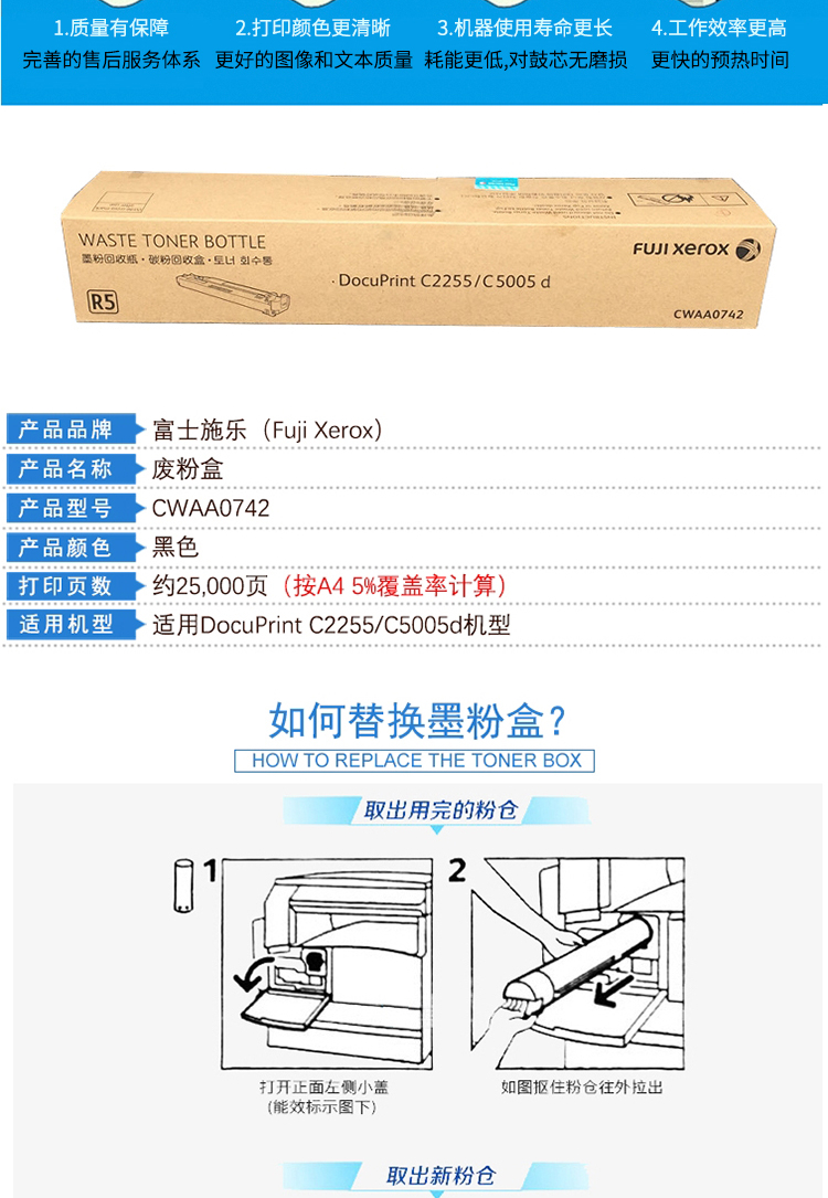 商品名称:富士施乐(Fuji Xerox)CWAA0742 废粉盒(适用于:C2255,c5005d)