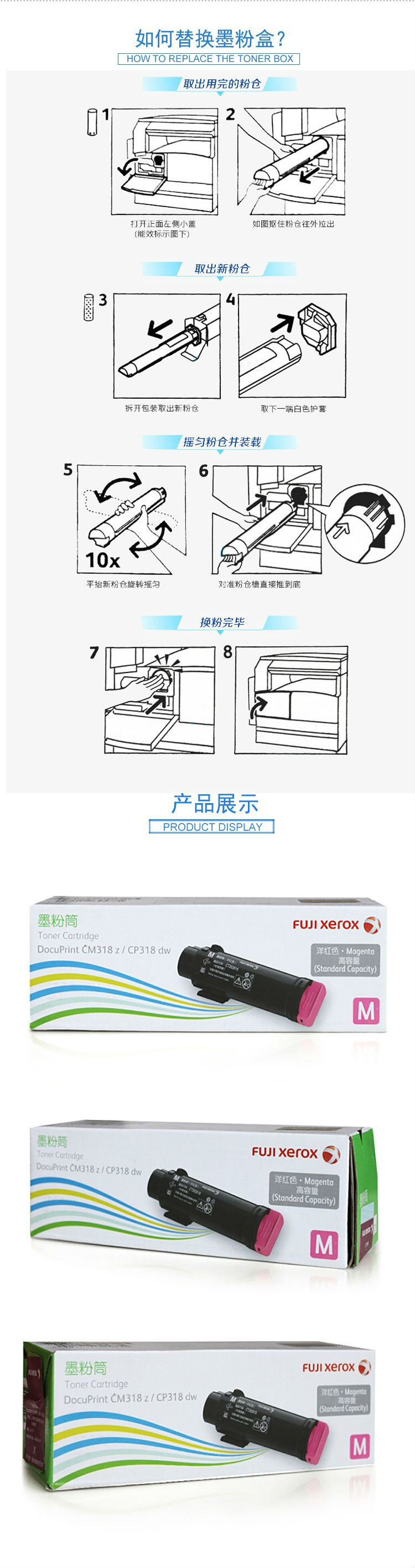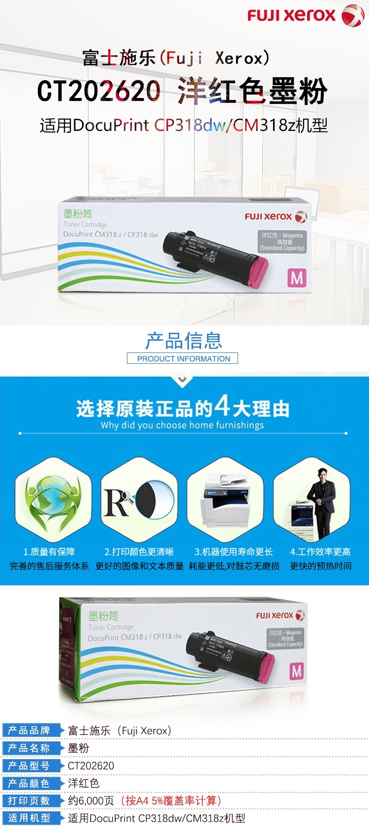 商品名称:富士施乐(Fuji Xerox)CT202620高容量洋红色墨粉(适用于:DocuPrint CP318dw/CM318z)