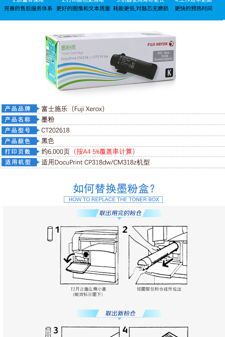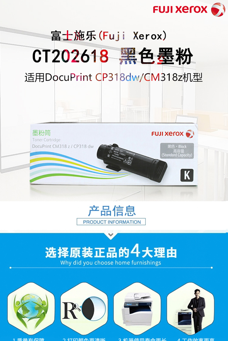 商品名称:富士施乐(Fuji Xerox)CT202618高容量黑色墨粉 (适用于:DocuPrint CP318dw/CM318z)