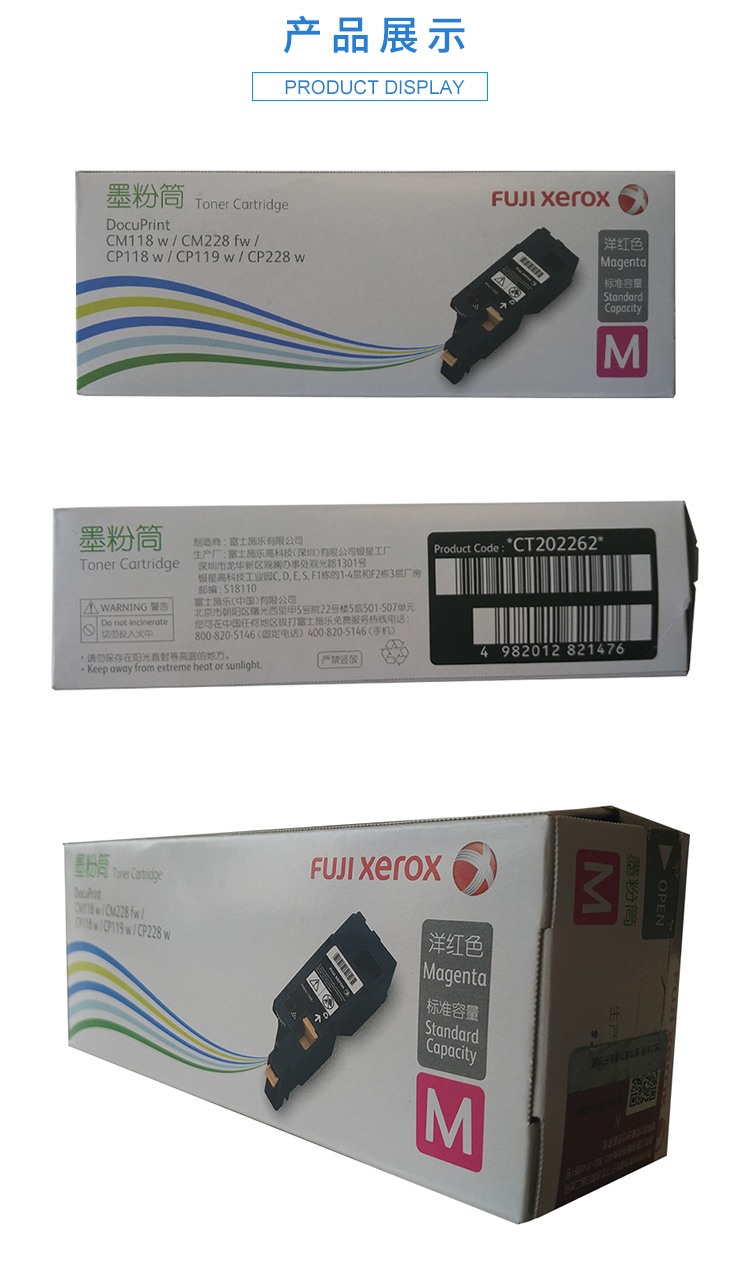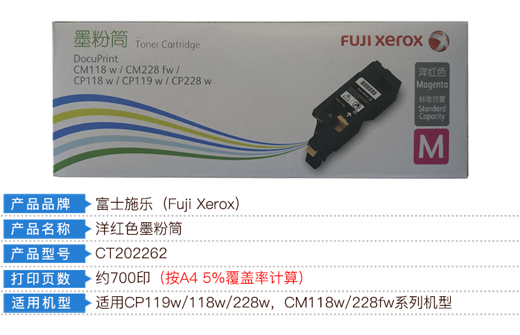 商品名称:富士施乐(Fuji Xerox) 原装 CT202262红色标准容量墨粉盒(适用于:CP119w;CP118w;CP228w;CM118w;CM228fw)