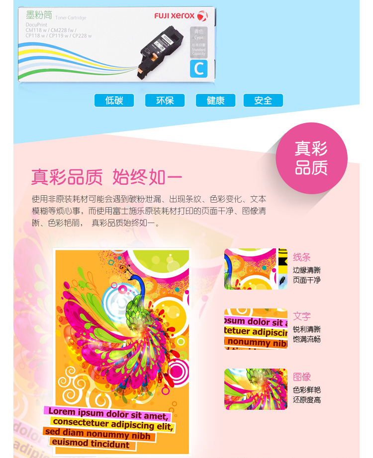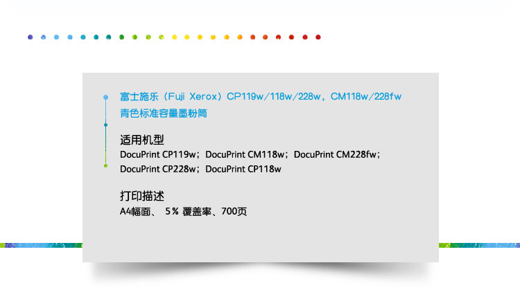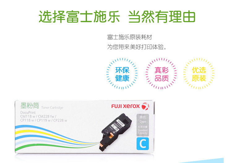 商品名称:富士施乐(FUJI XEROX) 原装 CT202261青色标准容量墨粉盒(适用于:CP119w;CP118w;CP228w;CM118w;CM228fw)