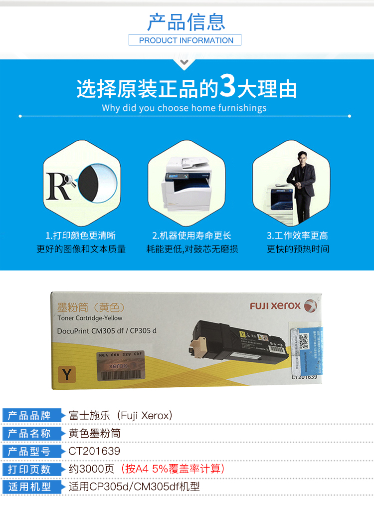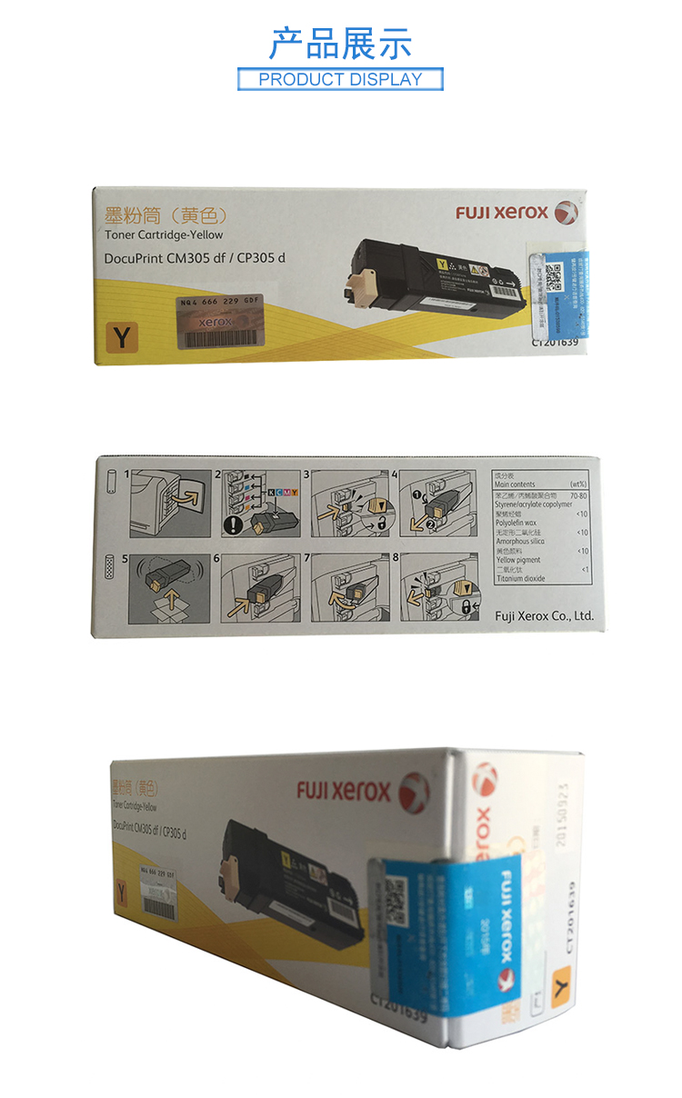 商品名称:富士施乐(Fuji Xerox)CT201639 黄色墨粉盒(适用于:DocuPrint CM305df/CP305d)