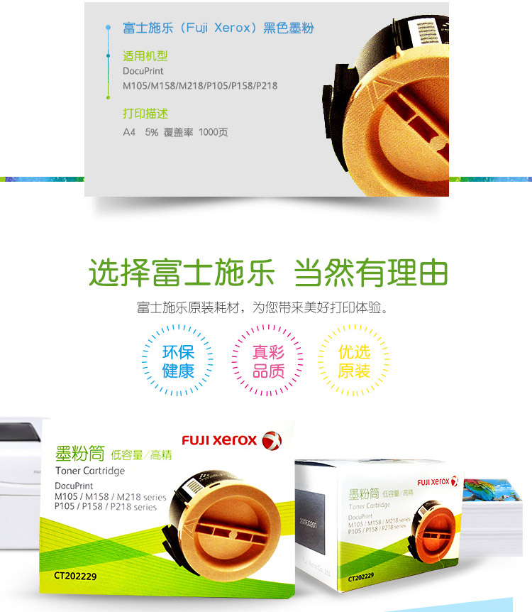 商品名称:富士施乐(Fuji Xerox)CT202229 黑色墨粉盒(适用于:DocuPrint M105/M158/M218 series /P105/P158/P218 series)