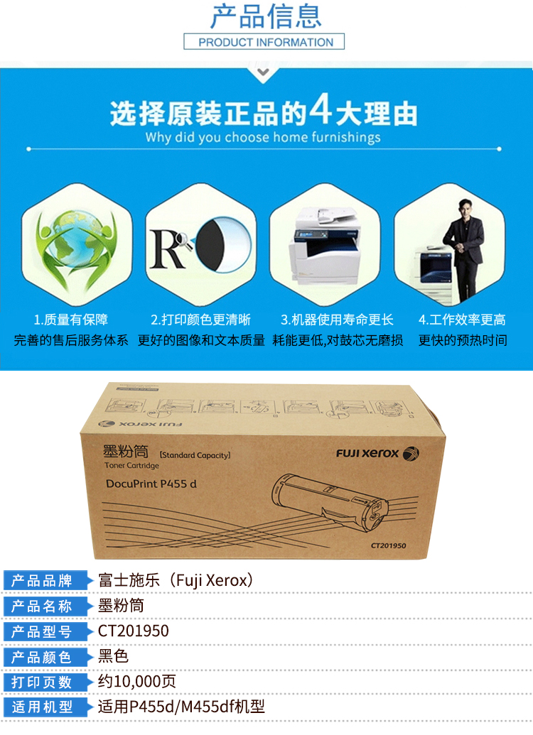 商品名称:富士施乐(Fuji Xerox)CT201950 标准容量墨粉盒(适用于:DocuPrint P455d)