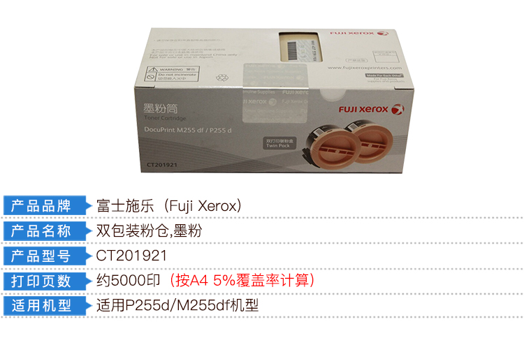 商品名称:富士施乐(Fuji Xerox)CT201921 黑色碳粉盒双包装(适用于:DocuPrint M255df/P255d)