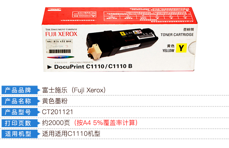 商品名称:富士施乐(Fuji Xerox)CT201121黄色墨粉(适用于:C1110)