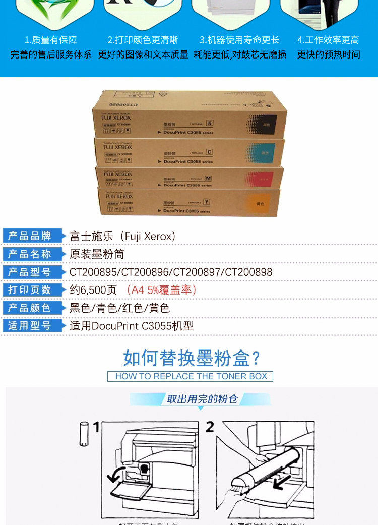 商品名称:富士施乐(Fuji Xerox)CT200898黄色墨粉(适用于:C3055)