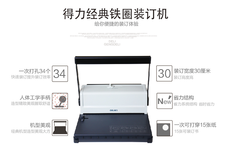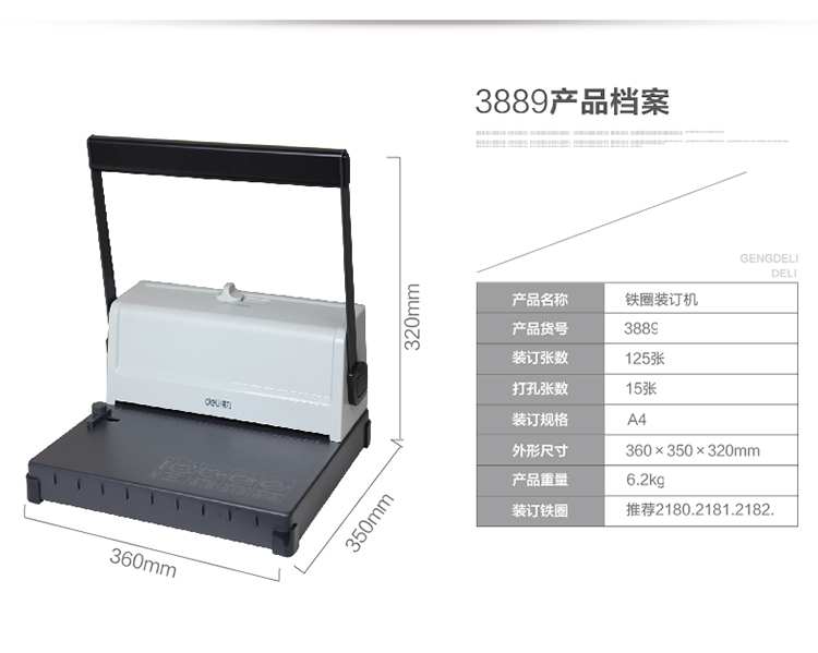 商品名称:得力3889铁圈装订机(白)(1台/盒)