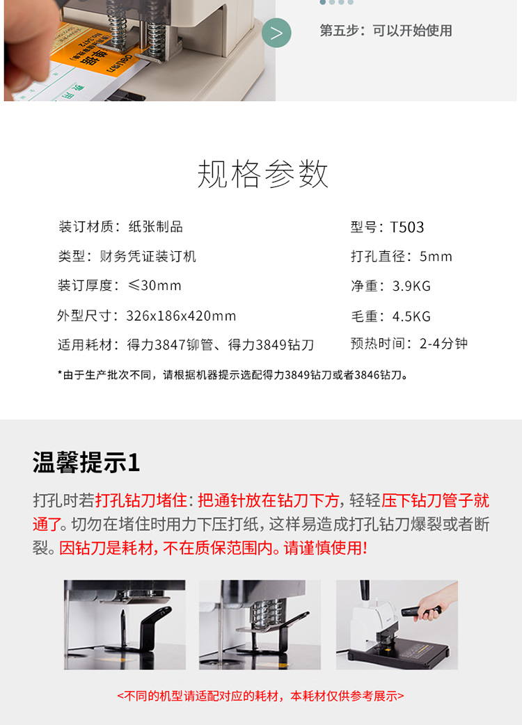 商品名称:得力T503财务装订机(深灰)