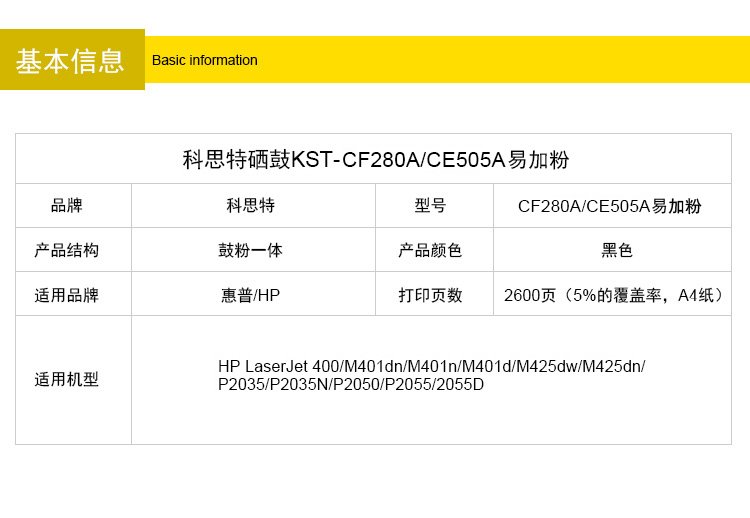 型号:K CF280A/CE505A(易加粉版)