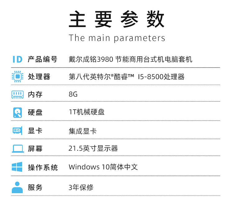 商品名称:戴尔(DELL)成铭3980 商用台式机电脑套机 I5-8500/8G/1T/DVD刻录/W10/21.5寸显示器
