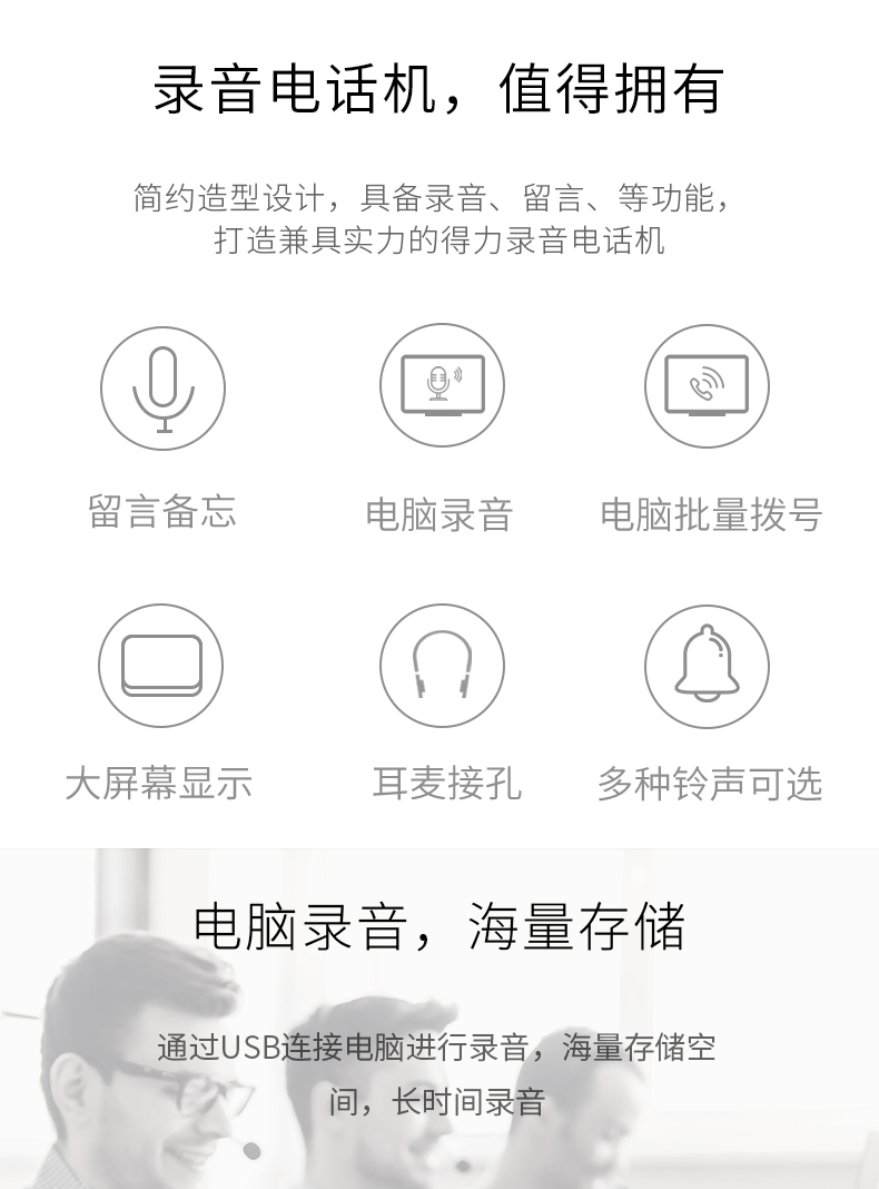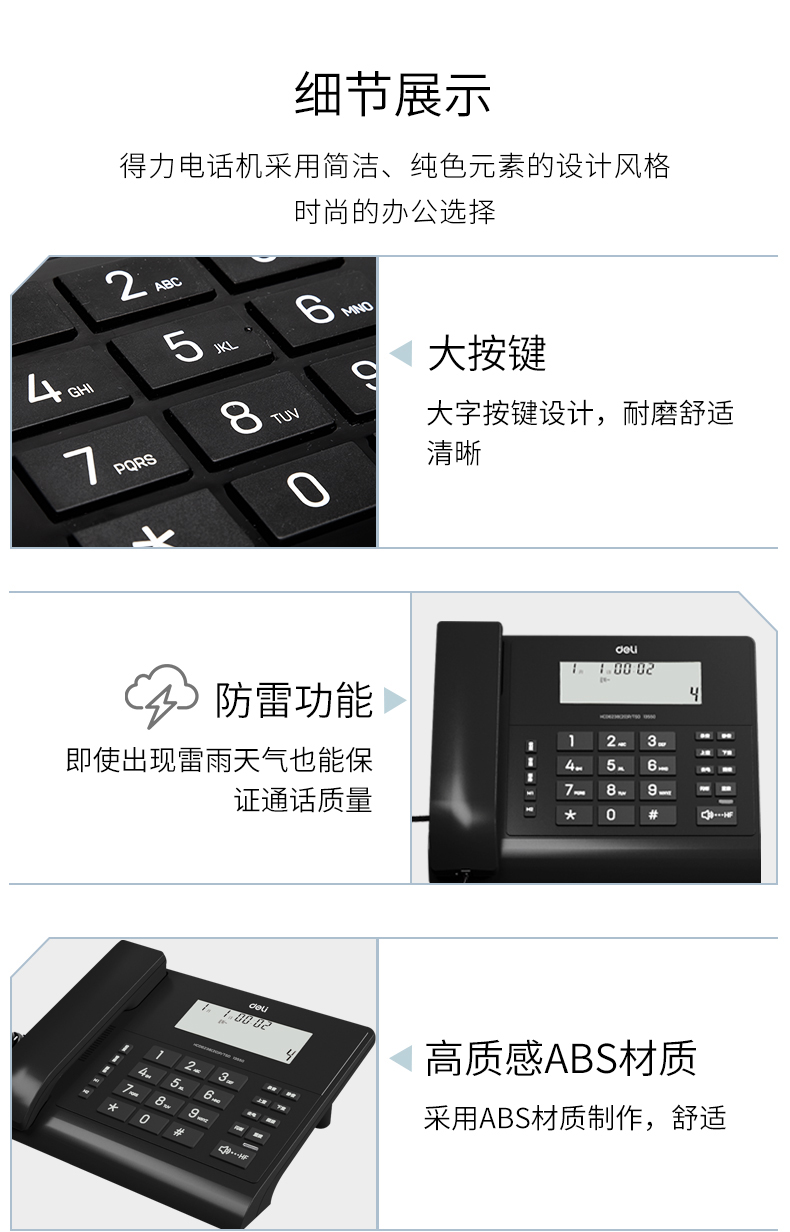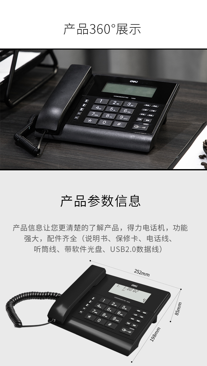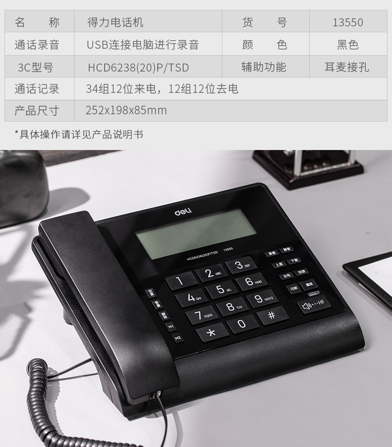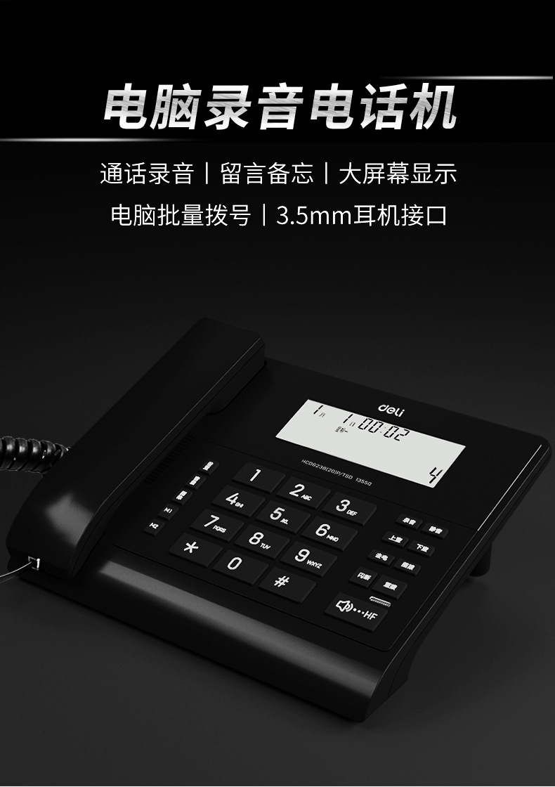 商品名称:得力13550电脑录音电话机(黑色)