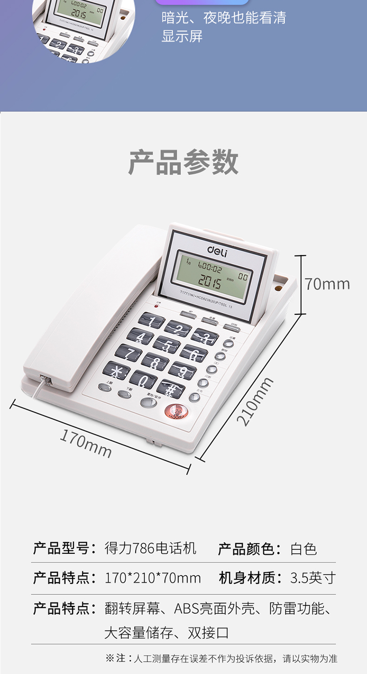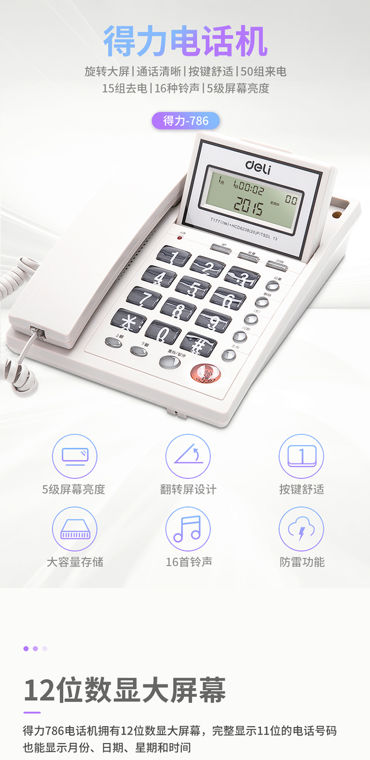 商品名称:得力786电话机(黑)(台)