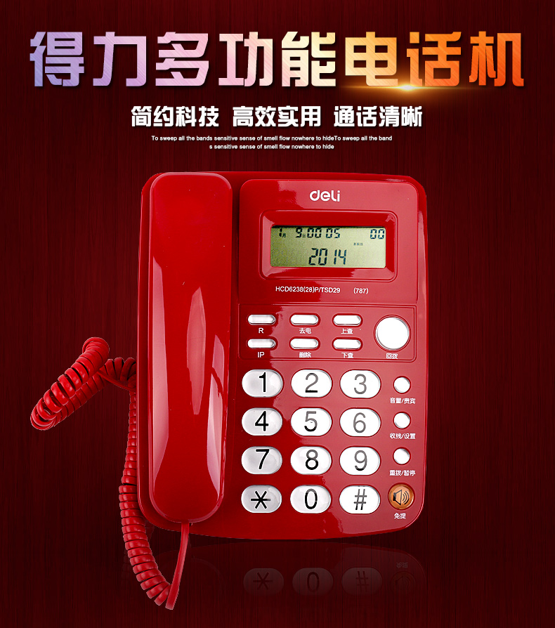 商品名称:得力787电话机(红)(台)