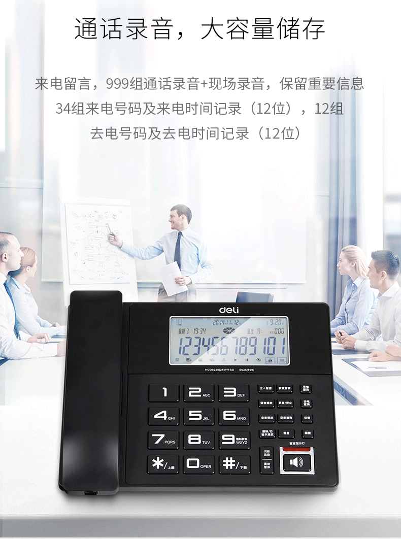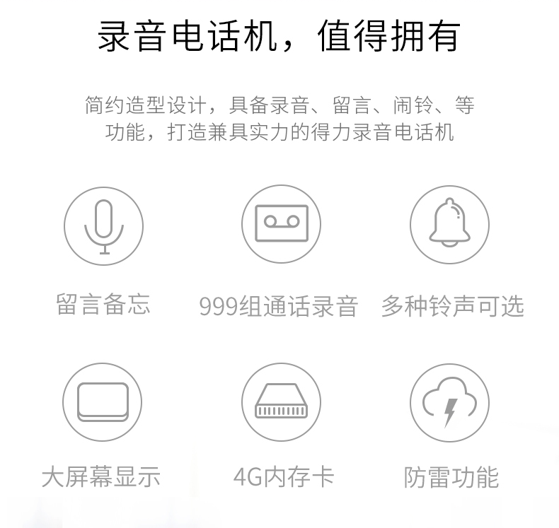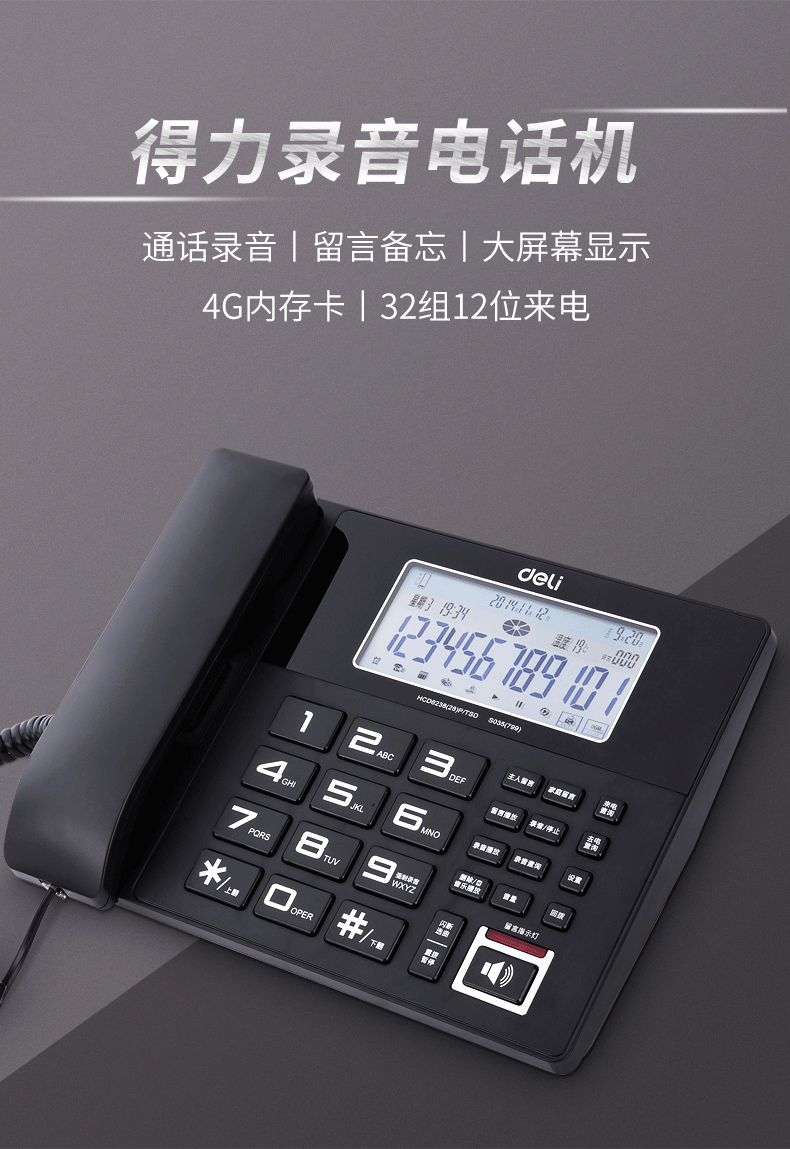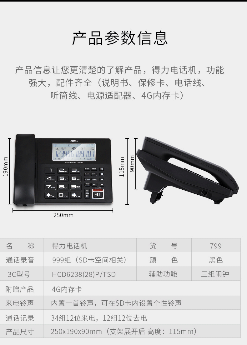 商品名称:得力799录音电话机(黑色)(台)