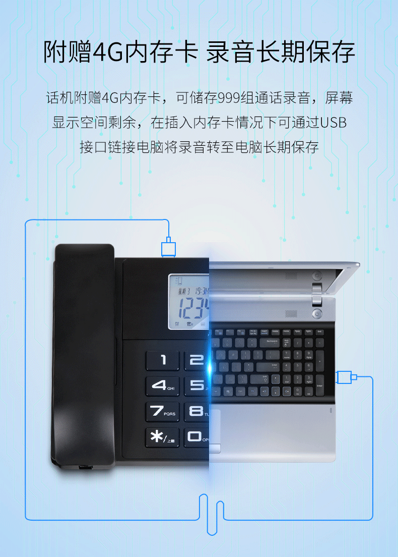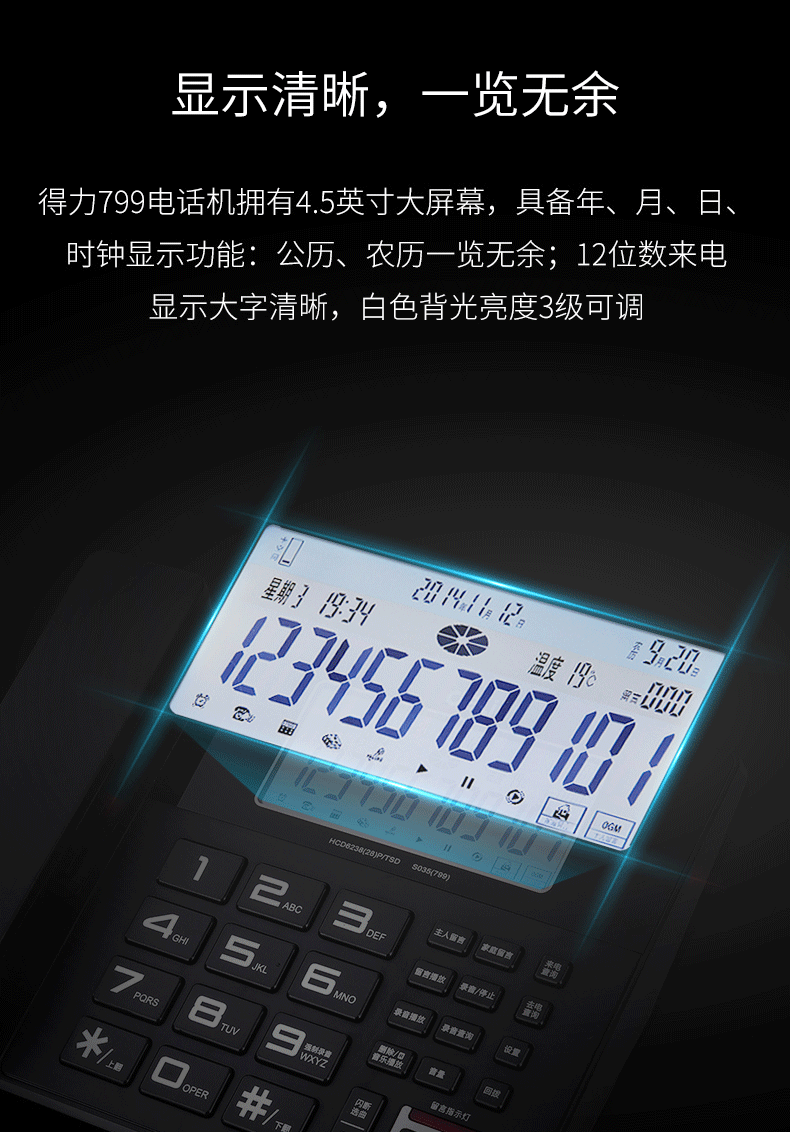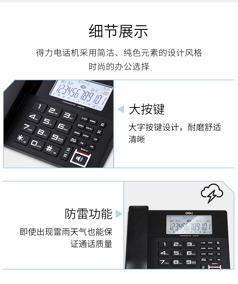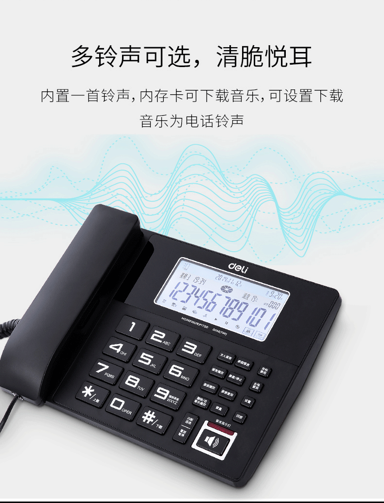商品名称:得力799录音电话机(黑色)(台)