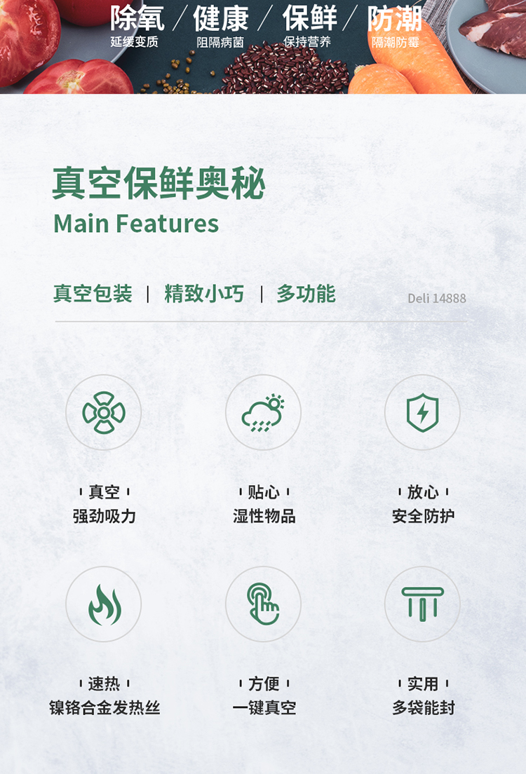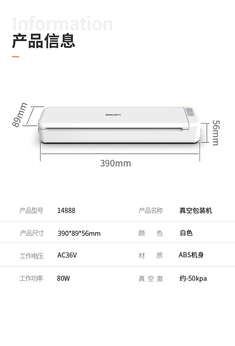 商品名称:得力14888真空包装机(白)
