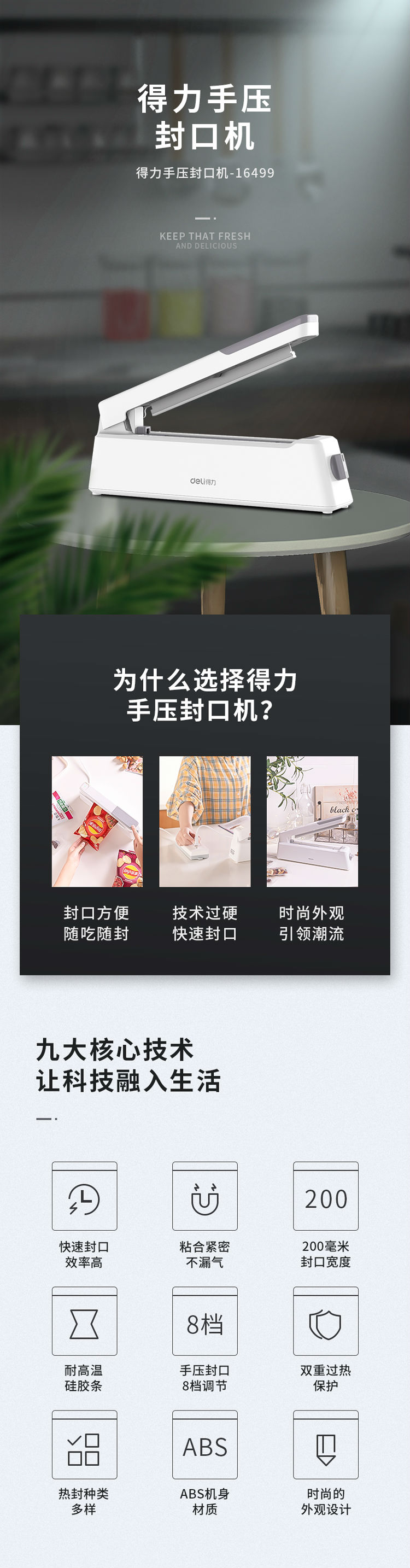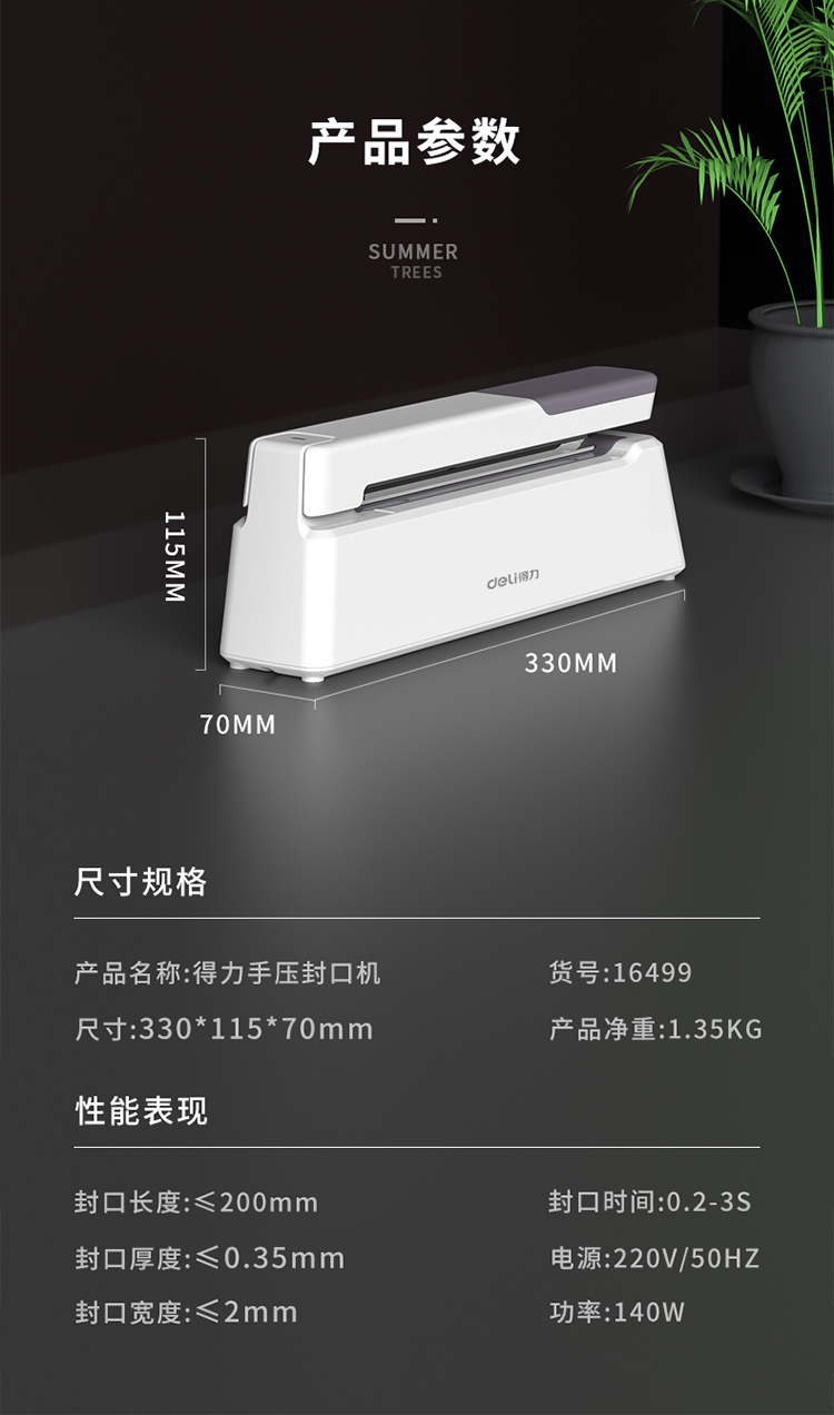 商品名称:得力16499手压封口机(白)