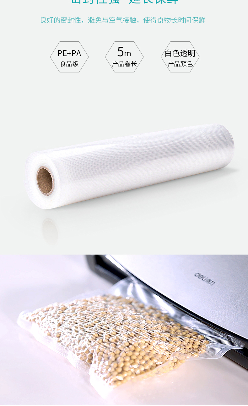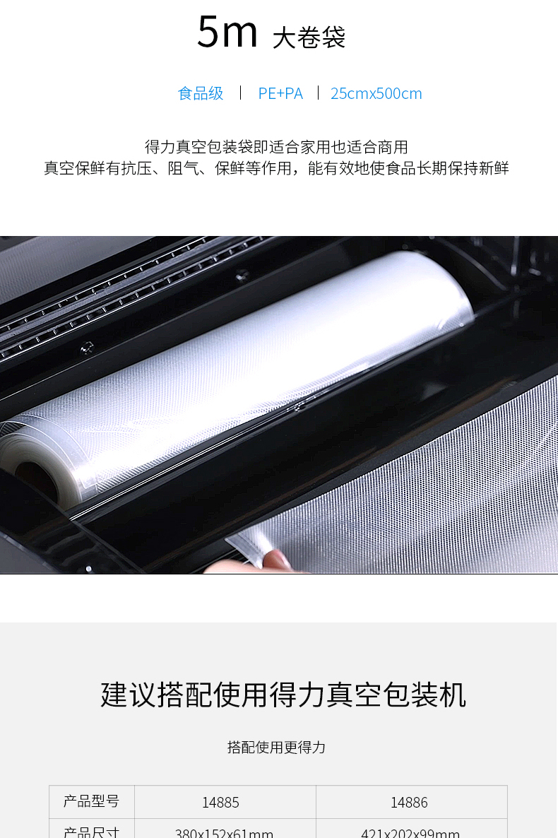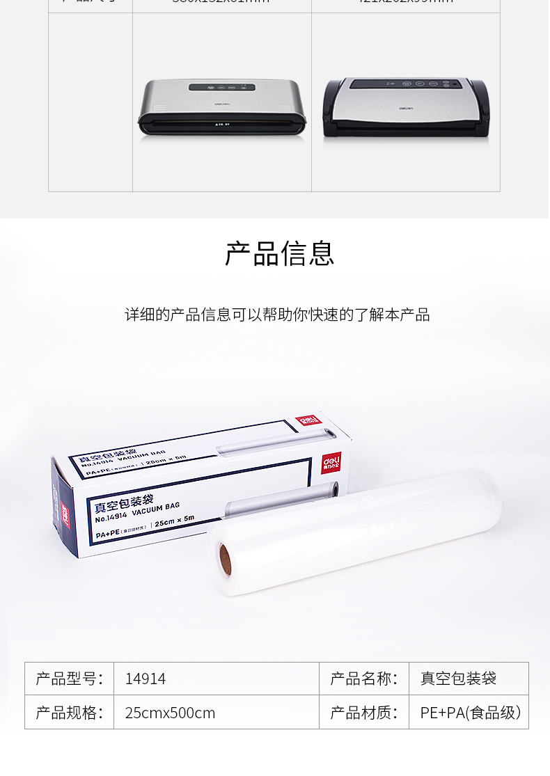 商品名称:得力14914真空包装袋25CM*5M(本色)(1卷/盒 2盒)