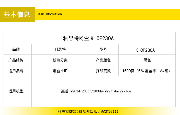 商品名称:科思特CF230A粉盒带芯片 适用惠普 M203d/dn/dw M227d/fdn/fdw/sdn 专业版