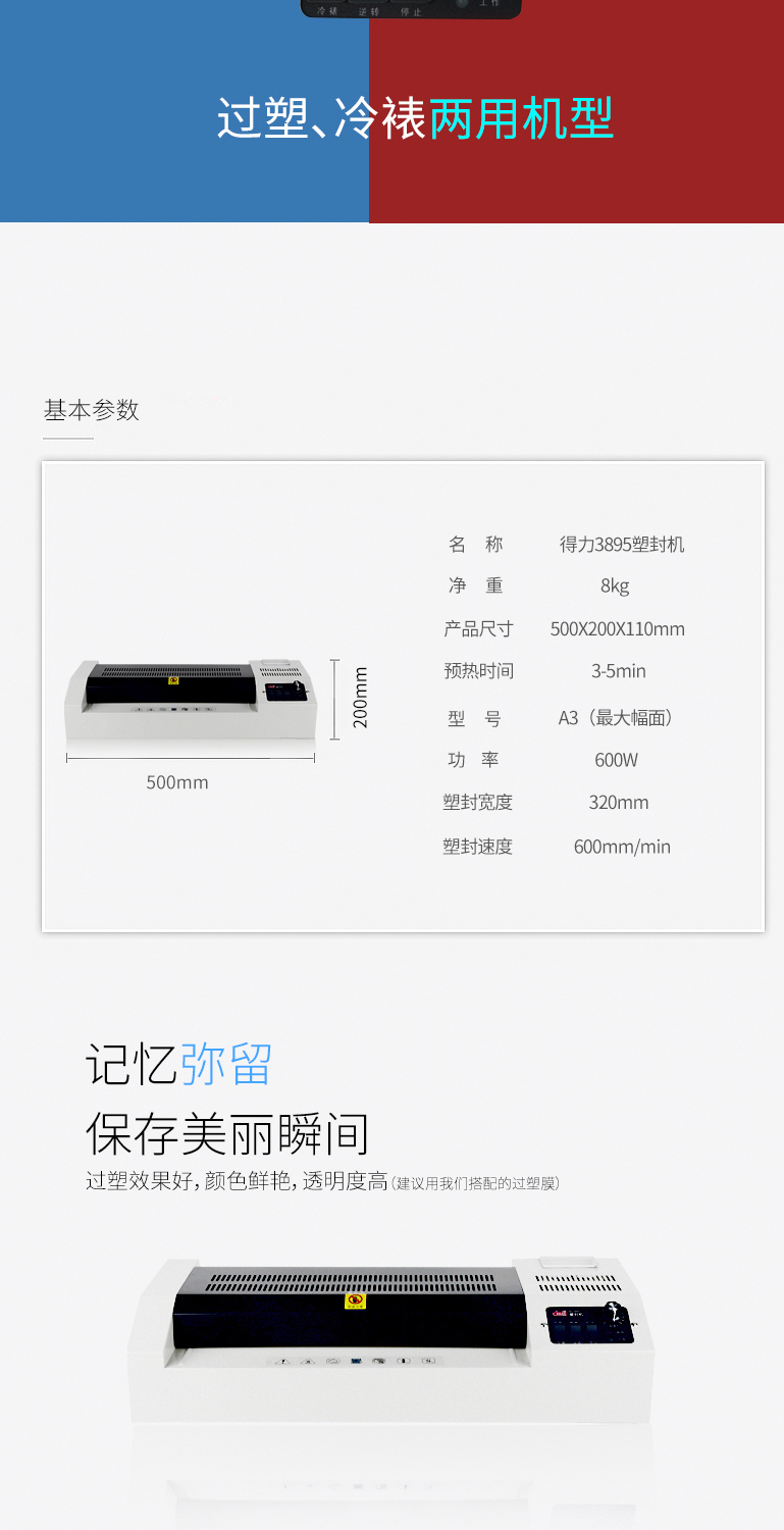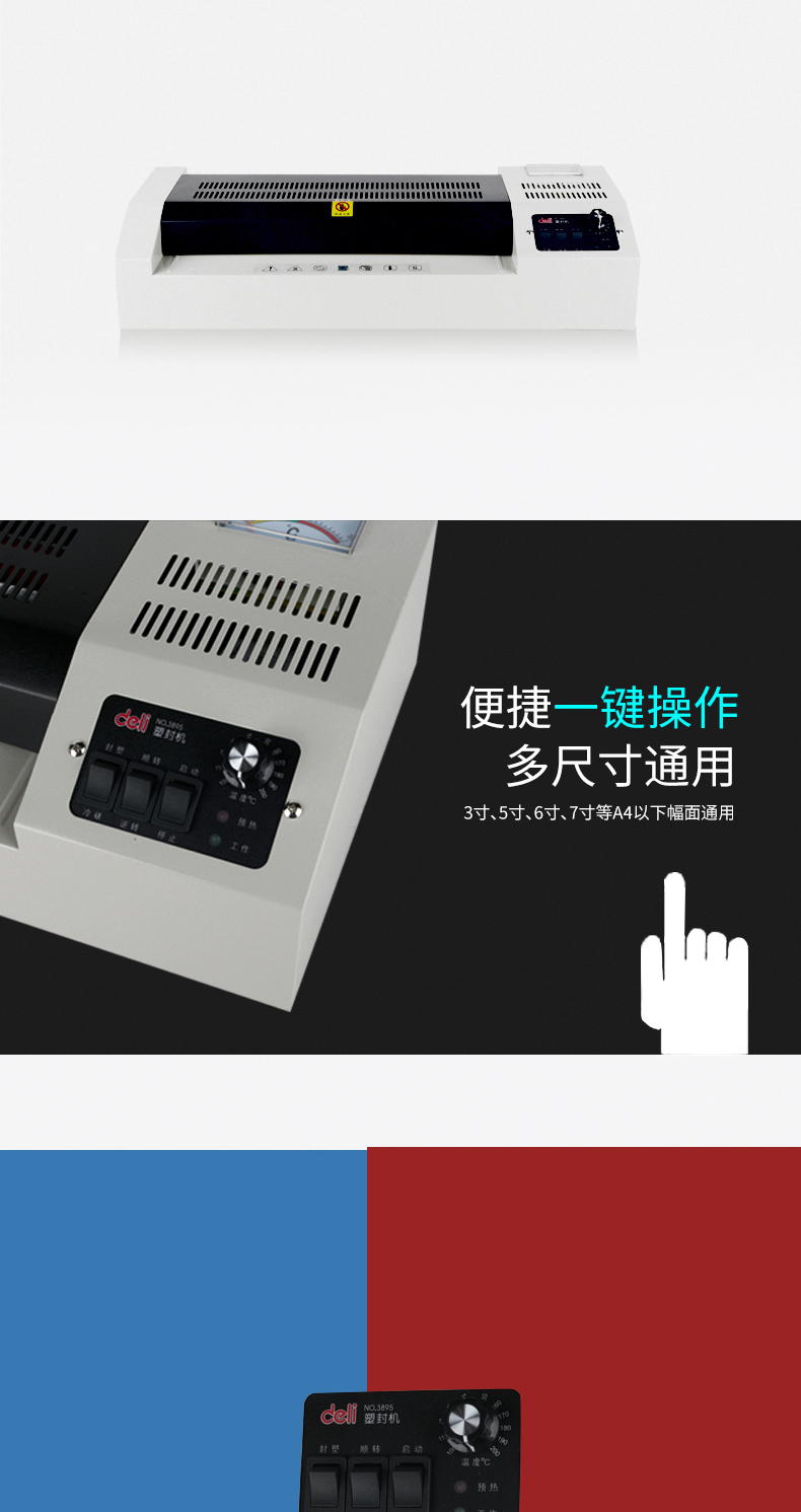 商品名称:得力3895塑封机(灰白)(台)