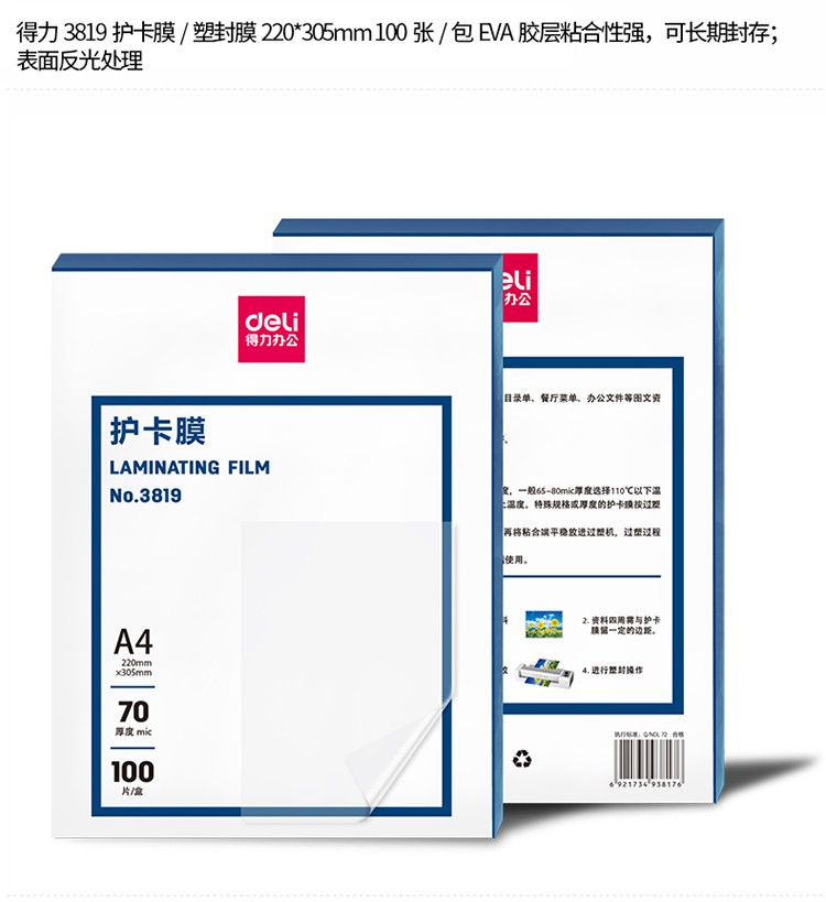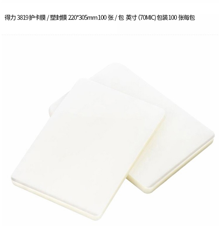 商品名称:得力3819护卡膜(透明)(100片/包)
