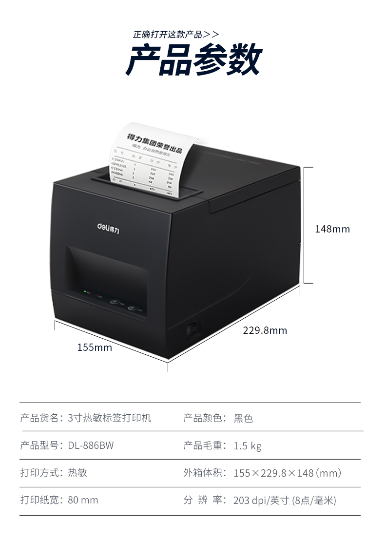 商品名称:得力DL-886B条码打印机(黑)