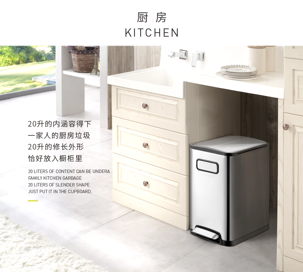 商品名称:EKO垃圾桶脚踩开盖双门垃圾桶 砂钢 EK9377MT-12L
