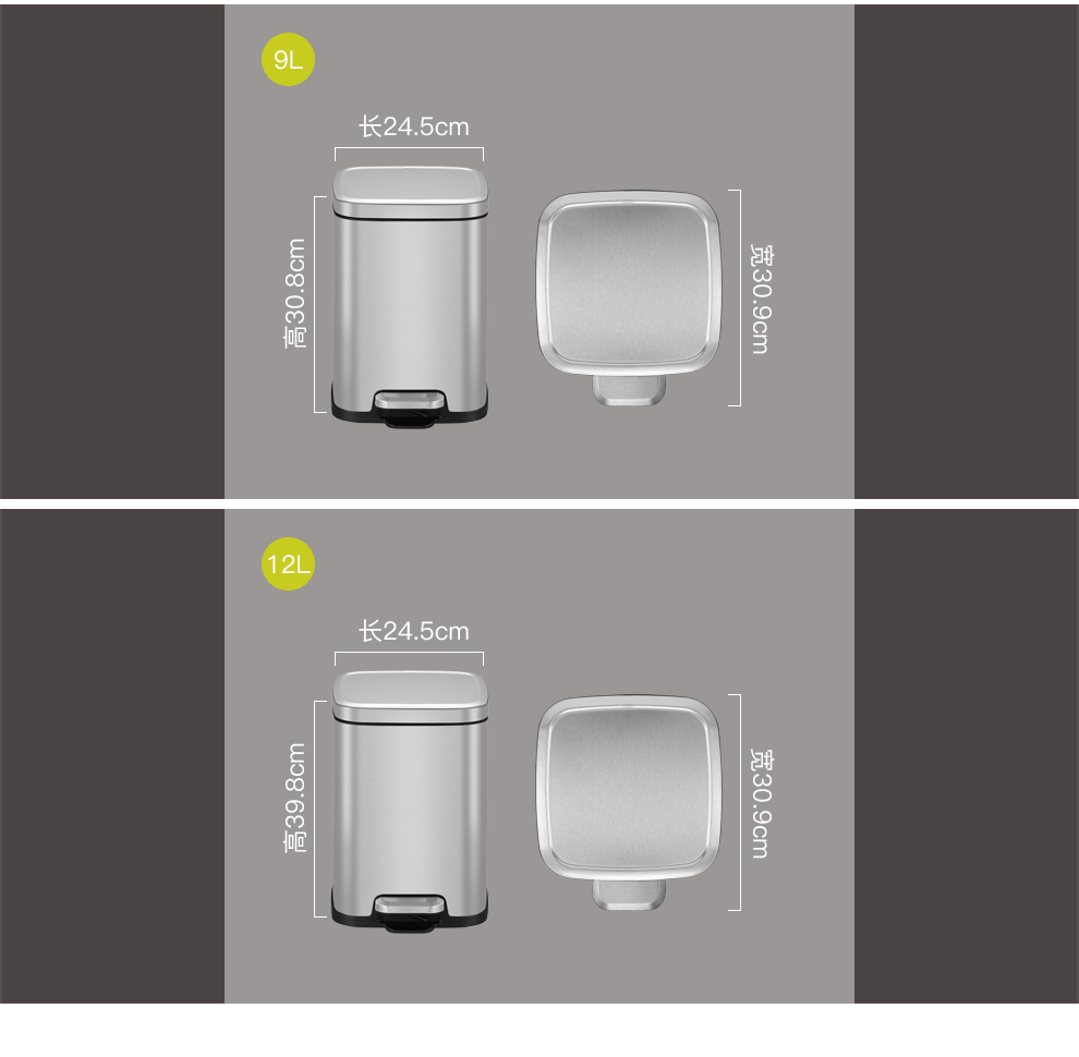 商品名称:EKO垃圾桶脚踩开盖垃圾桶 砂钢 EK9384MT-12L