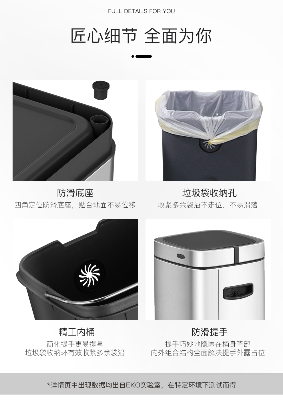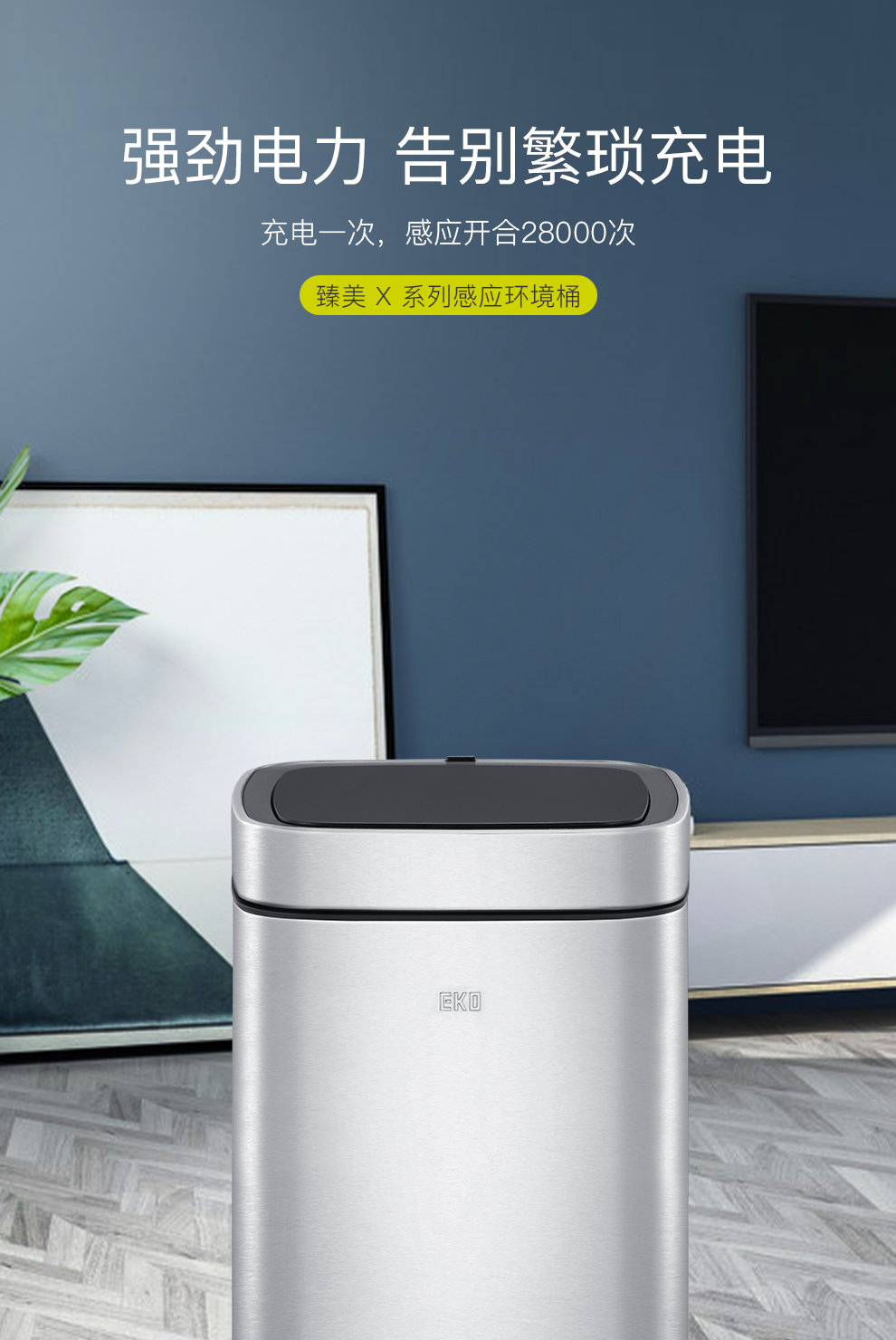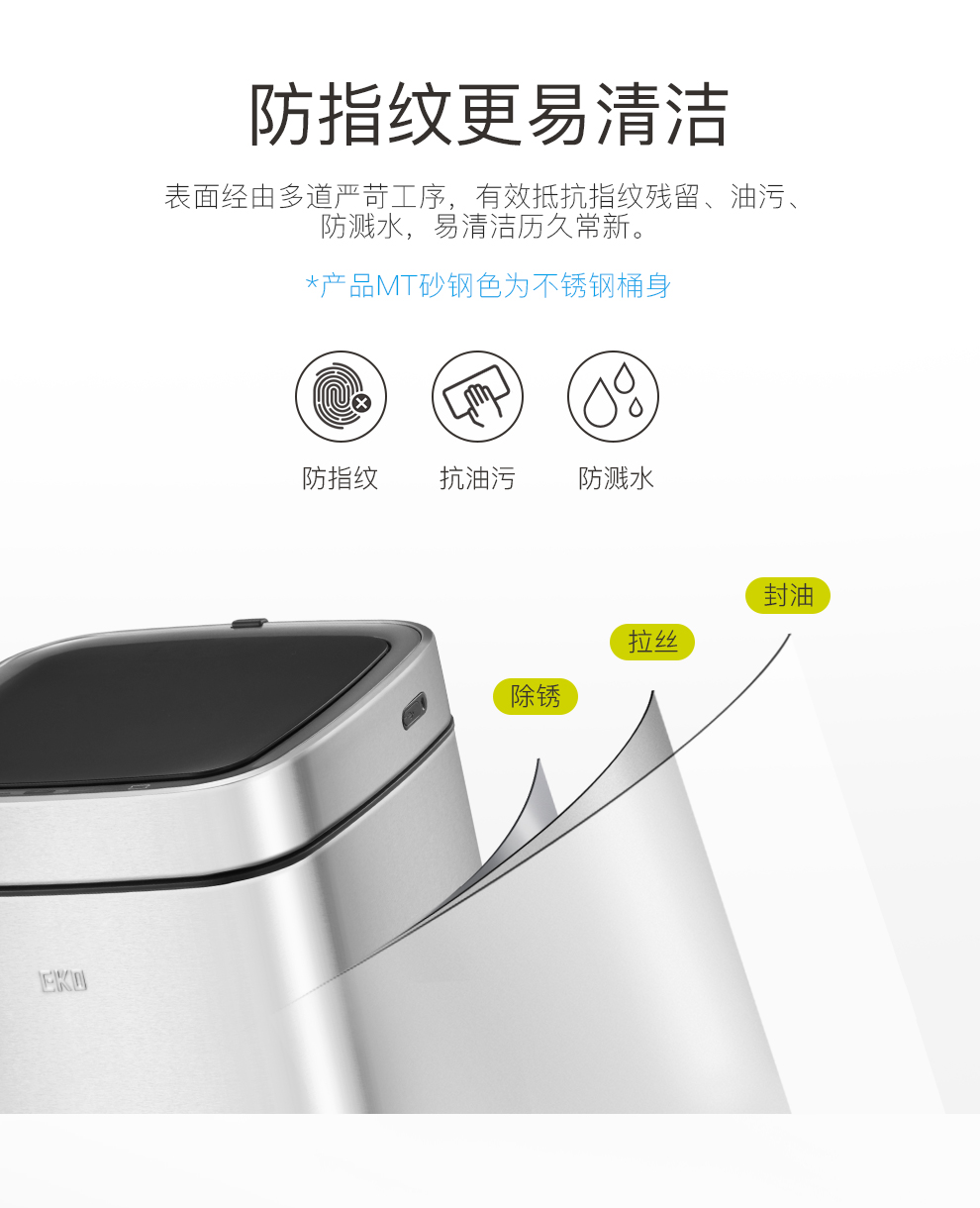 EKO垃圾桶智能感应不锈钢金属 砂钢 EK9252RGMT-9L