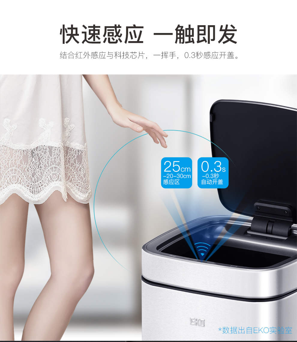 商品名称:EKO垃圾桶智能感应不锈钢金属 砂钢 EK9252RGMT-9L